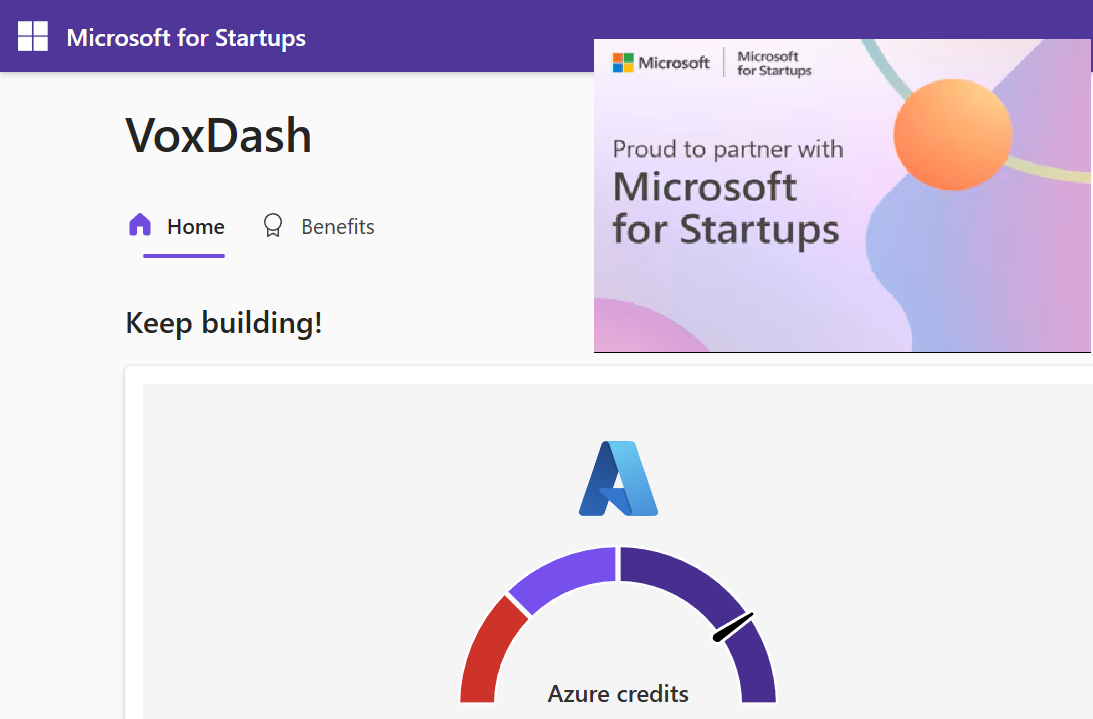 VoxDash is proudly supported by the Microsoft for Startups program, with Azure credits supporting its core AI and cloud operations.